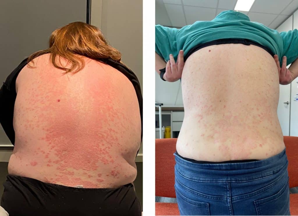 We planned her surgery in a few months after extensive pre surgical investigations. She recovered well after her gastric bypass and came for her first post op review. Thanksfully her Psoriasis had not flared and she was of course apprehensive about this.